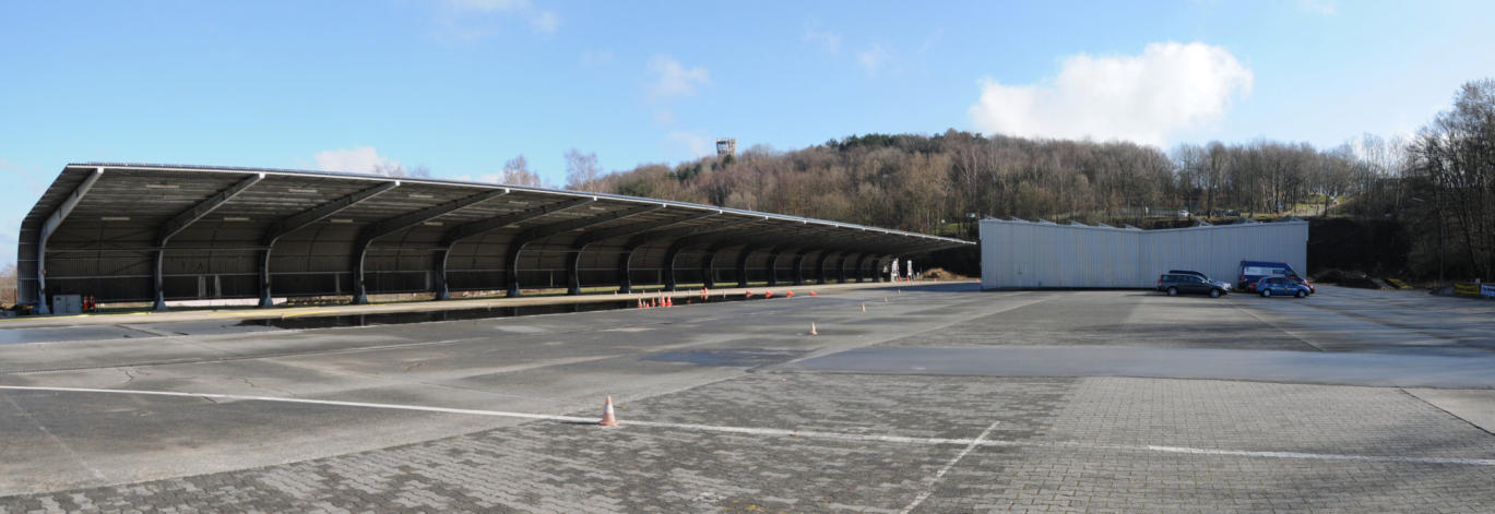 Der Fahrtrainingsplatz liegt inmitten des malerischen Sauerland-Parks Hemer. Es ist eine ehemalige Panzer-Abstellfläche in einem aufgegebenen Kasernengelände, die über eine robuste und sehr gut befahrbare Betonoberfläche verfügt.